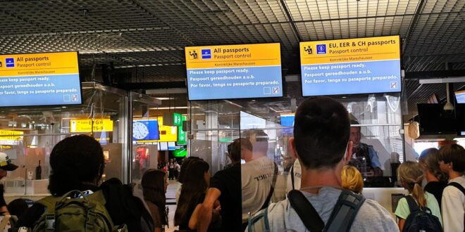 Immigration counters at Schiphol Airport in Amsterdam. From 10 April, the EU’s Entry/Exit System (EES) becomes fully operational across 29 European countries. All non-EU nationals — including visitors, tourists and business travellers — will have their biometric data registered at the border, replacing the traditional passport stamp/Photo: AfricanCourierMedia