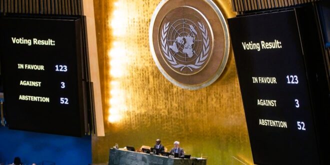 On 25 March 2026, the United Nations General Assembly adopted a resolution introduced by Ghana recognizing the transatlantic trade in enslaved Africans and racialized chattel enslavement as the “gravest crime against humanity.” The resolution passed with 123 votes in favour, 3 against and 52 abstentions. The three votes against came from the United States, Israel and Argentina. Most European Union states abstained, as did the United Kingdom.